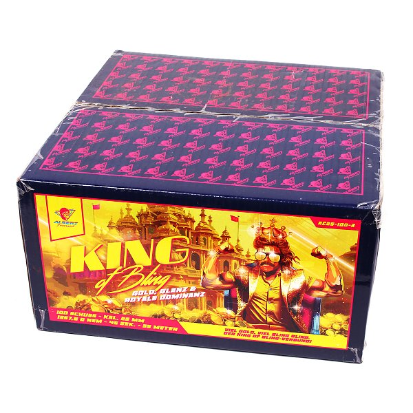 Neuheit 2021 von Funke Feuerwerk aus der Albert-Serie. Offenbar hat die Serie Alba ausgedient und wurde umbenannt in Albert?! Jedenfalls sind im letzten Jahr noch 2 sehr interessante Verbünde aufgetaucht und wir haben natürlich zugeschlangen. Die kleinen Kraftpakete sind überschnittlich gut, so ist man es ja von Funke gewohnt. Heute kommt die King of Bling mit 100 Schuss in Kaliber 25mm bei 1258gr. NEM. Extrem schneller Verschuss in Gold mit tremolant-goldenen Blinkern, sowie Silberpalmen mit roten Blinkern. Weiter mit Goldglitzerbuketts und weiß/grünen Blinkern, am Ende kräftiges Brokatfinale mit weißen und roten Blinkern. Die Box ist in drei Elemente aufgeteilt, das finale Endstück ballert die Effekt weitgestreut mit großer Ausbreitung in nochmal gesteigertem Tempo.