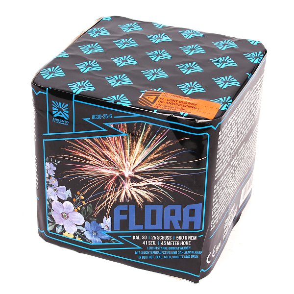Neuheit von Funke Feuerwerk aus der Argento Serie. Die große XXL Batterie Flora im Baukörper der Zylon. Kal. 30mm und glatte 500gr. NEM.