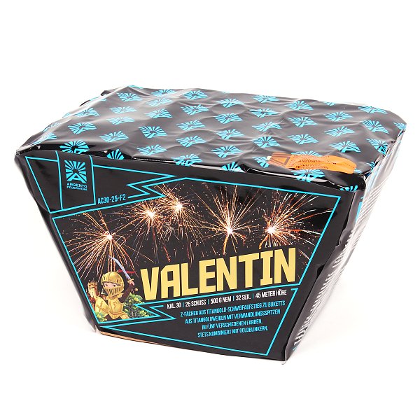 Die erste richtige Fächerbatterie von Argento Feuerwerk. Eine heftige Z-Shape Batterie mit 25 Schuss in einem Kaliber 30mm. Das Schusstempo könnte durchaus etwas schneller sein, aber die 30mm sind schon beachtlich. Die Effekte sind recht gut durchmischt, viel Gold, das Finale besteht auch einer gefächerten Salve auf Schlag, bei der nochmal alle Effekte zum Einsatz kommen. Die Kombination aus Gold und Silber mit farbigen Sternen, scheint auf dem ersten Blick etwas einfach, aber bei einem Format ähnlich der "The Wall", sollte der Live-Eindruck überzeugen können.