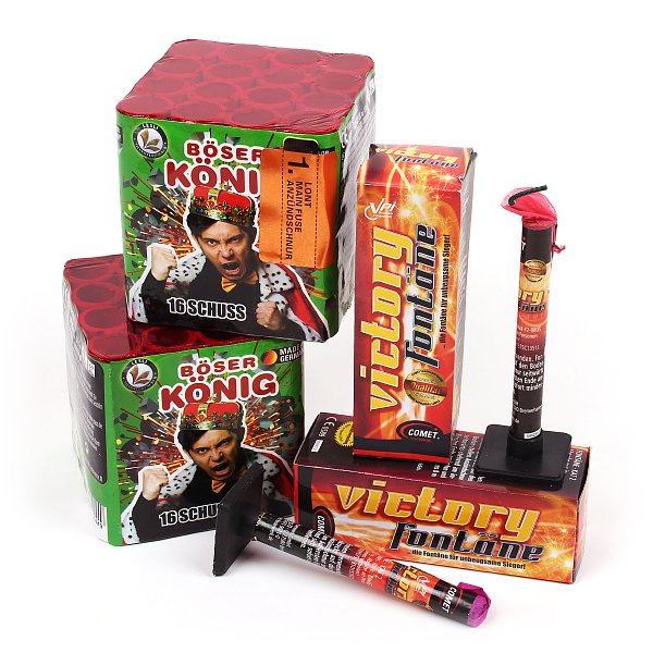 Zwei Lesli Batterie Böser König, sowie zwei Comet Victory Fontänen.