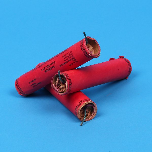 Schöne und solide Super Böller 1 aus Ende der 90er Anf. 2000. Die Machart und Wandung erscheinen hier noch äußerst ansehnlich und könnten, wenn sie dürften, noch ordentlich knallen. Einzelnen Wandungen und Eindrücke können leicht abweichen, für das Bild haben wir natürlich nur TOP-Models genommen. In Summe ist es aber alles eine Charge.