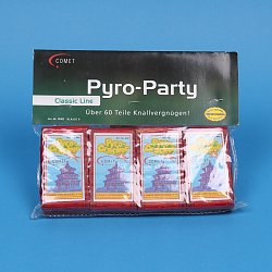 Wir selbst halten noch Artikel bereit, welche uns an die gute alte Zeit erinnern. Das sind vor allem Einzelartikel wie Single Shots, Römische Lichter, Vulkane, Fontänen sowie etwas Tischfeuerwerk. Es gab eine Zeit (vor Auftreten von Funke-Feuerwerk), da galt der normale China Böller D von Comet als Referenz. Häufig wurde der Comet-Schinken als das Beste in Sachen Knallware genannt. Dieser Mythos hielt sich aufgrund alter Erfahrungen mit den Pagode Labels, die auch jüngst noch von einigen Händlern in ihren Werbepublikationen abgebildet wurden. Die hoffnungsvollen Kundenströme, die diese Werbung auslösten, wurden jedoch stets enttäuscht, handelte es sich doch nur noch um die nicht vergleichbare aktuelle Böller-Charge.
