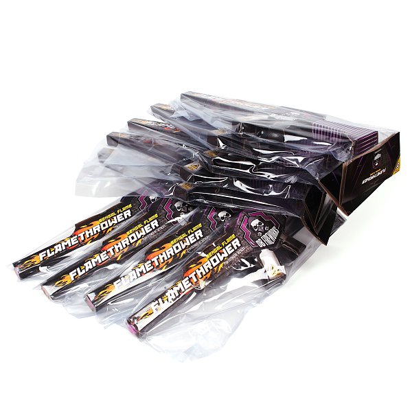 Was für ein Teil! Ich bin selbst etwas unsicher, wie ich das finden soll! Wir haben seit Jahren das Schwert von Lesli, ein Artikel, der sich – allein schon wegen des Preises – schwieriger verkaufen lässt. Im Laden ist das Ding immer wieder ein Kracher und zieht die Blicke sämtlicher Kinderaugen an. Das schafft der Flamethrower natürlich auch, sogar besser. Doch die Eltern schrecken mehr zurück als beim Schwert. Das Teil kam zeitlich ein wenig vor dem Einmarsch Russlands in die Ukraine auf den Markt. Aber seitdem ist das Produkt bei Lesli durch. Man muss hier ja zu keiner Seite Stellung beziehen. So eine Waffe mutet nun einmal seltsam an. Das dachte sich wohl auch Lesli und wollte es unbedingt loswerden. Wer musste herhalten? Die Feuerwerksvitrine. Wir sind KLAR gegen Waffenlieferungen, jetzt, wie auch schon vor einem knappen Jahr. Dieser Flammenwerfer ist ein Artikel, der fast unverkäuflich ist, auch ohne das aktuelle Zeitgeschehen. Wie setzt man solch ein Produkt in Szene, ohne dass es unangemessen wirkt? Für Kinder sicherlich leichter, sie sollten schließlich so gut wie möglich frei von den weltpolitischen Umständen aufwachsen können. Wer es schafft, seinem Kind damit eine Freude zu machen, der behält sich was bei, das für Kinder beim Großwerden unerlässlich ist.