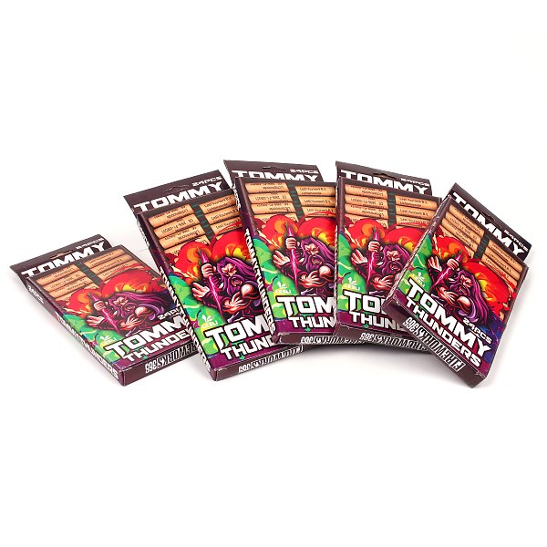 Die Tommy Thunders sind mir gleich aufgefallen! Obwohl ich von den zahllosen Varianten an neuen "Hollandknallern" nahezu genervt bin, weil sie letztlich alle nicht viel können und immer das Gleiche ist, erfreut mich die Hoffnung, Cracklingböller mit Leuchteffekten erwarten zu dürfen. Berichte anderer haben aber gezeigt, dass viele Varianten dieser neuen F1-Schwemme häufig Leuchtsterne haben und sich daher größerer Beliebtheit erfreuen, als man hätte annehmen können. So sind Artikel wie Ghost Cracker oder Thunder Clouds auch mit Leuchtkugeln.