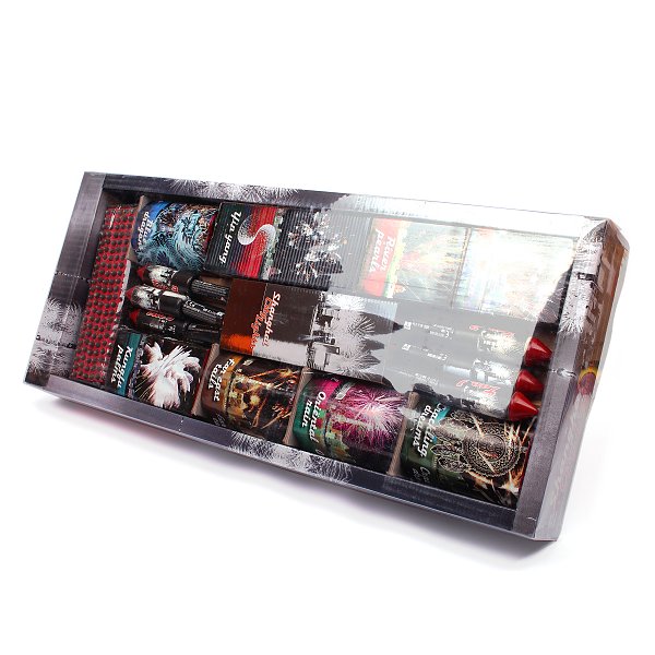 Unser Paket ab 400 beinhaltet das Große Shanghai City Lights Sortiment mit 6 Raketen, 6 Batterien und 3 Fontänen.