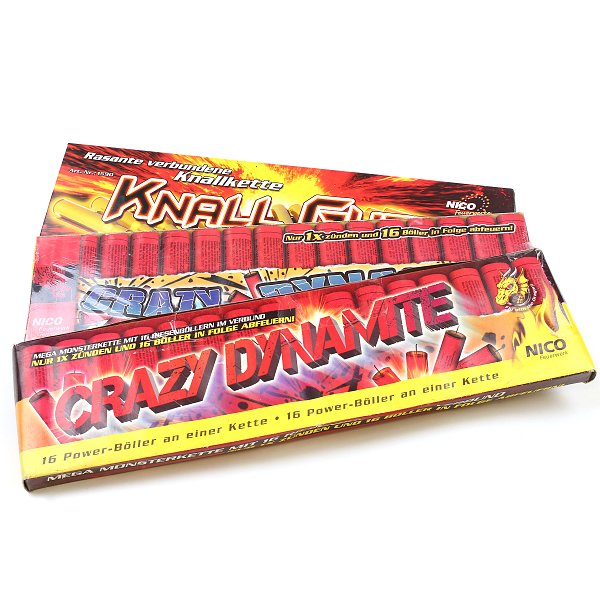 Auch dieses Jahr hauen wir im November noch einen raus! Drei neue Premium-Gratis-Angebote ab 100 Euro! Den Anfang machen zwei 16er D-Böller Knallketten von Nico! Es können dabei drei verschiedene Versionen der Knallkette zur Auslieferung kommen! Wir wünschen viel Spaß!