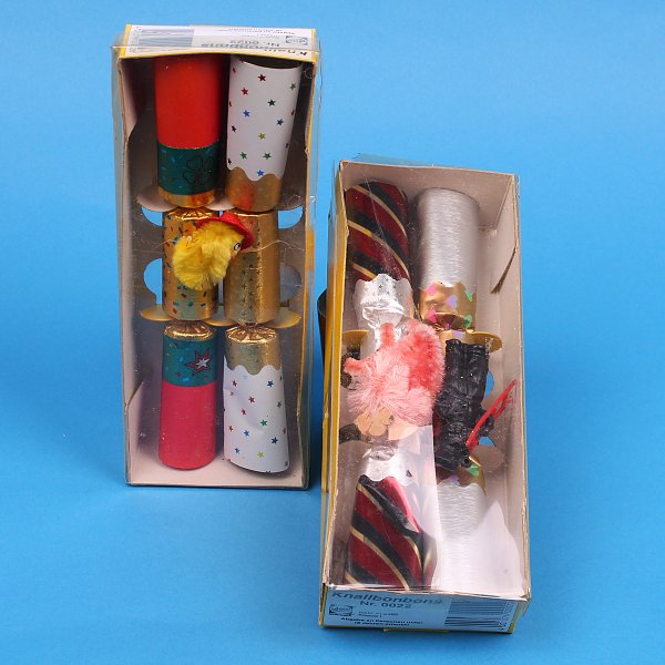 Schöne, alte Knallbonbons mit tollen Applikationen.