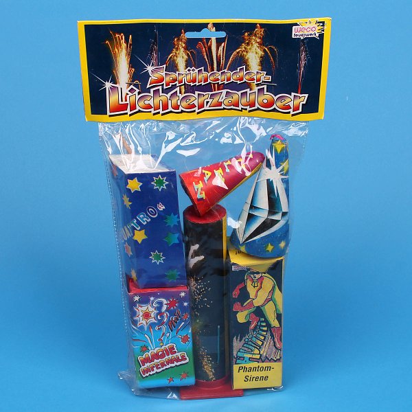 Netter Leuchtbeutel mit einer Knister-Kometenbombe und vielen anderen, vorallem älteren, Leuchtartikeln! Achtung, dieses Sortiment ist im Rahmen der Sommeraktion einmalig.