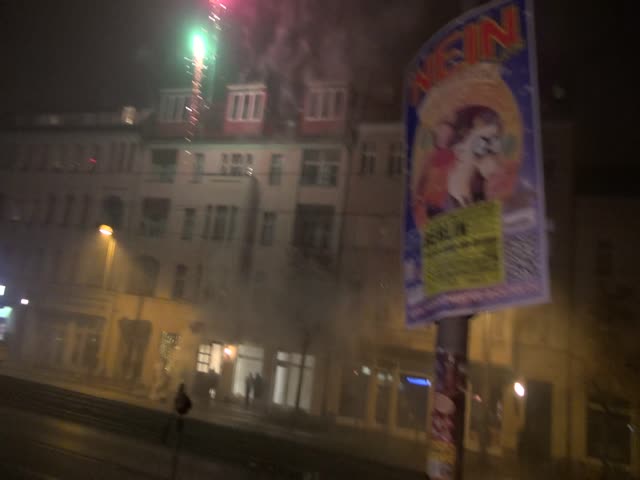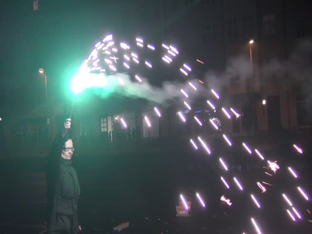 Silvestermitschnitt 2025, wildes Treiben... kleine, improvisierte Knallerkette und Frau schießt Raketen aus der Hand. Nach kurzem Interview berichtet die uns unbekannte Dame, sie hätte dies schon immer so gemacht.